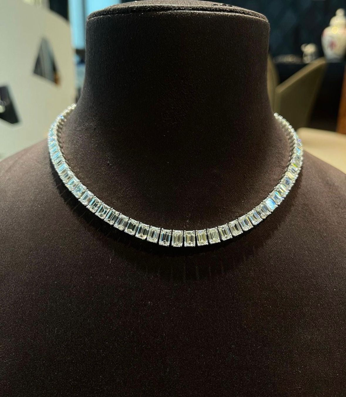 1 Carat Each Emerald Neck Jewel in Lab Grown Diamond on 14Kt Gold Base