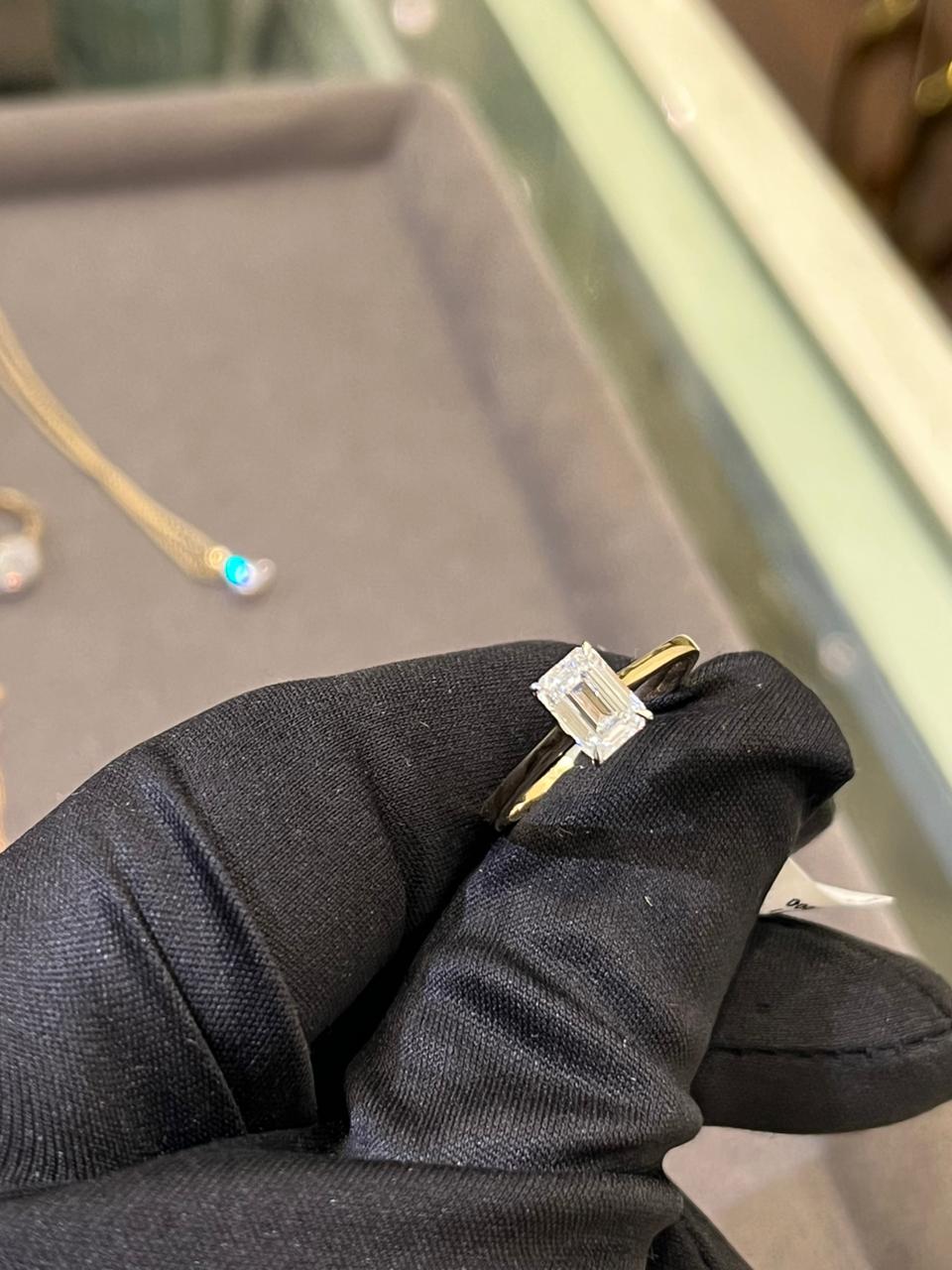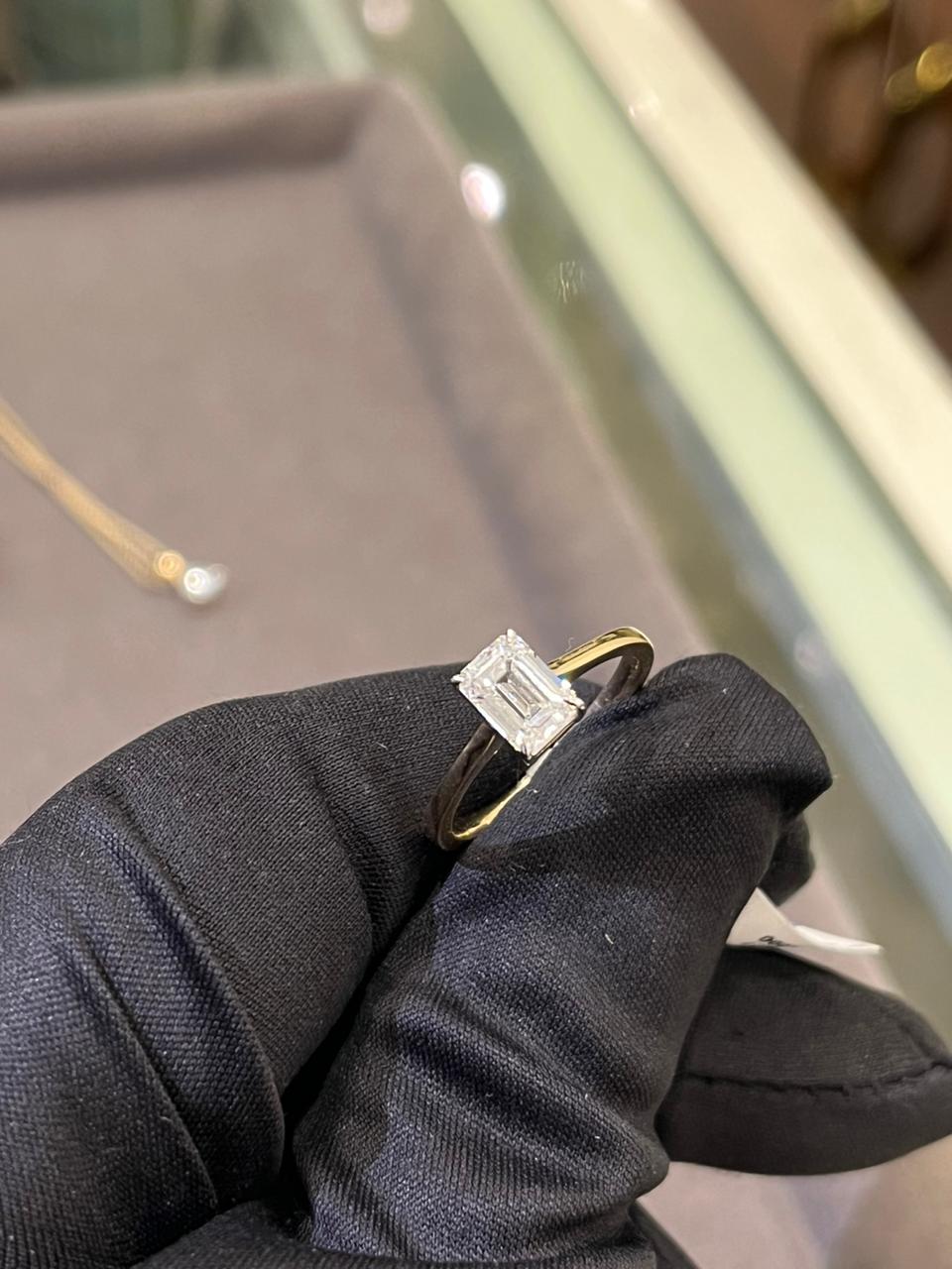1 Carat Emerald Cut Solitaire Ring LAB GROWN DIAMOND for Women Classic Style- 14Kt Hallmarked Gold & Certified IGI Lab Grown Diamond