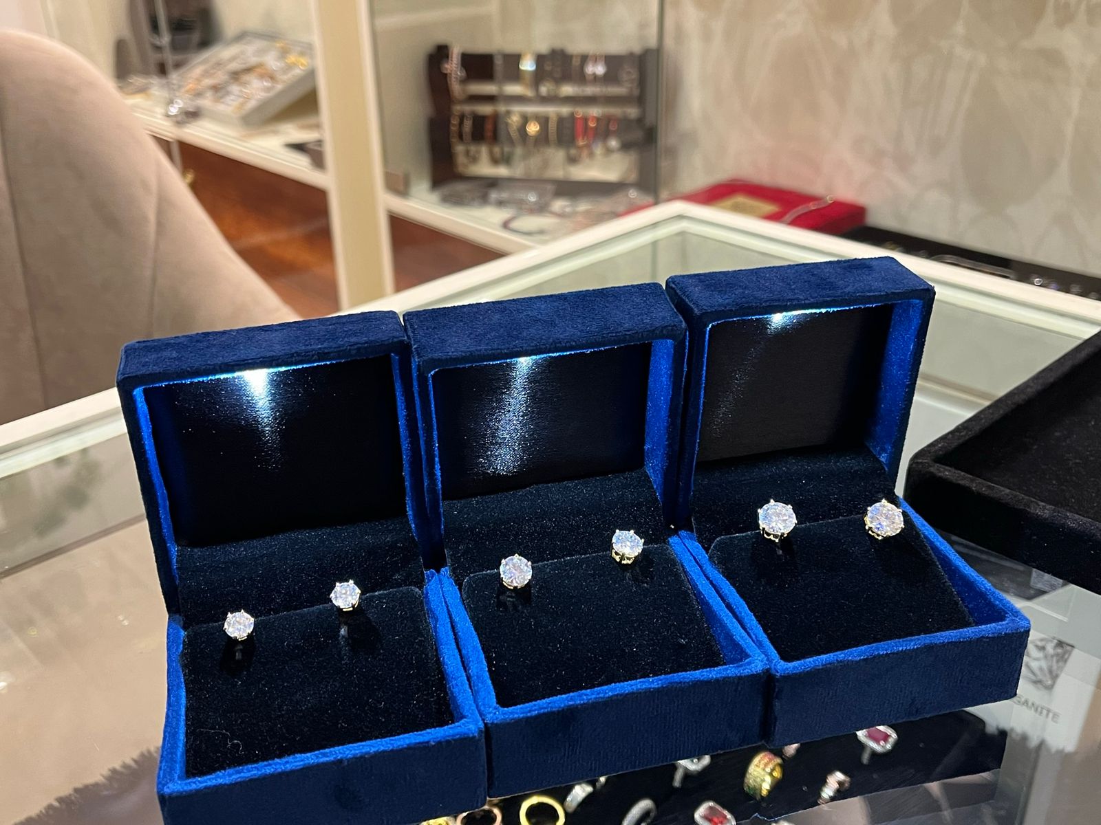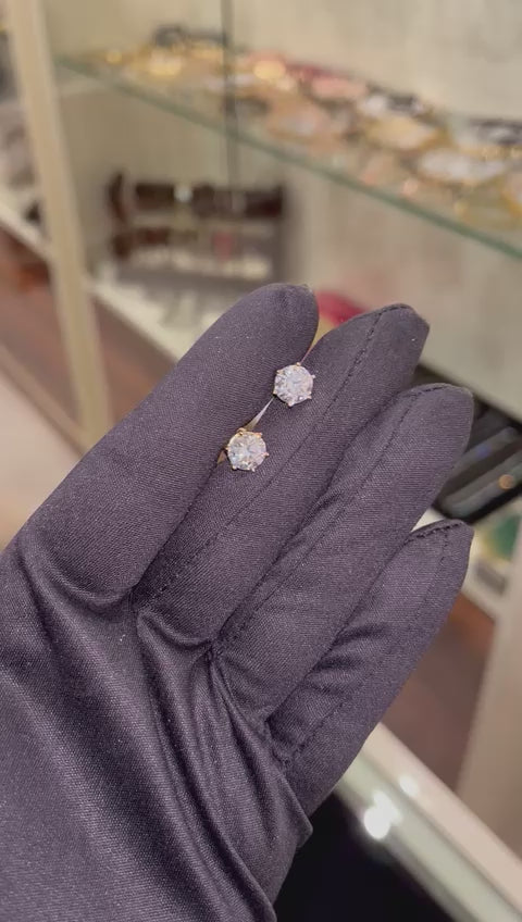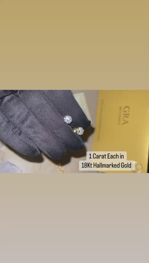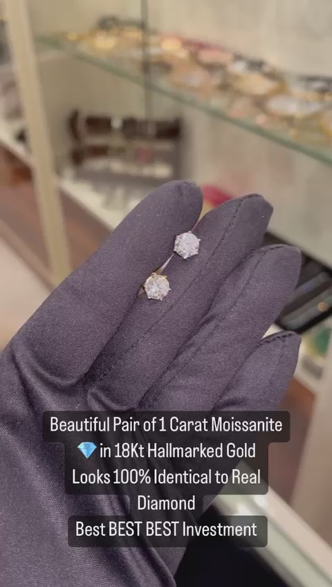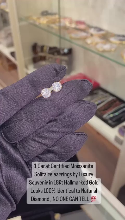 1 Carat Each Ear Pair of Certified Moissanite Solitaire Earings in 18Kt Hallmarked Gold